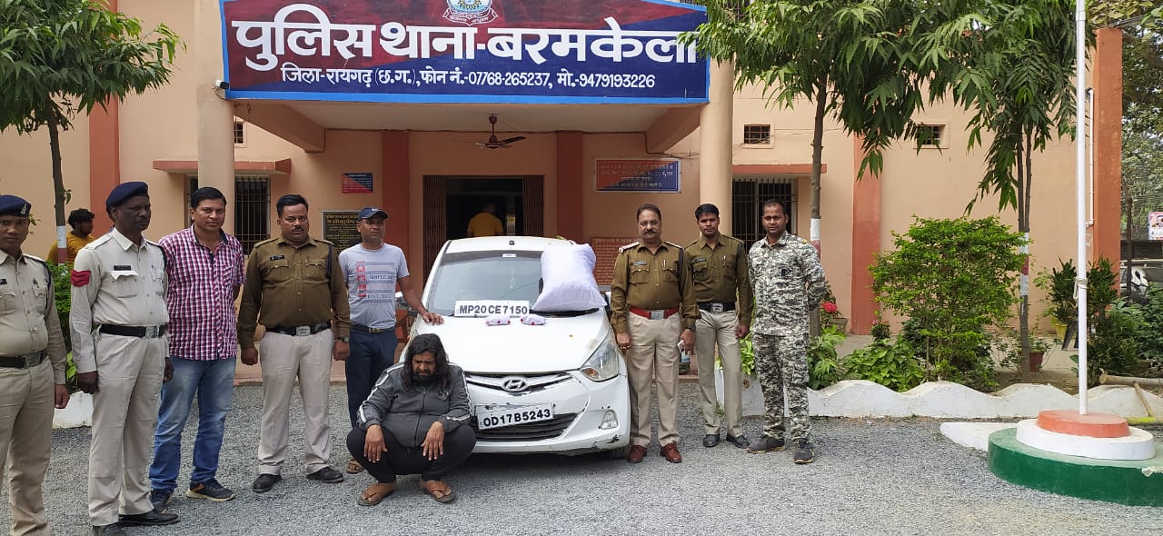 इसी कड़ी में दिनांक 10/12/2021 को #बरमकेला पुलिस द्वारा कार से मध्यप्रदेश होने वाले गांजा तस्करी को विफल किया गया है । जानकारी के मुताबिक दिनांक 10.12.2021 के दोपहर थाना प्रभारी बरमकेला निरीक्षक डी.के. मारकण्डेय हमराह स्टाफ द्वारा *झनकपुर चौक बरमकेला* पर वाहनों की चेकिंग कर रहे थे । उसी दौरान नावापारा उडीसा तरफ से आ रही *एक सफेद रंग के हुंडाई इयान कार क्रमांक MP 20 CE-7150* को रोका गया । वाहन चालक अपना नाम *राजकुमार द्विवेदी पिता जवाहर लाल द्विवेदी उम्र 47 वर्ष निवासी राजेन्द्र नगर गली नंबर 09 थाना सिविल लाईन सतना जिला सतना (म.प्र.)* बताया । आरोपी को जांच के कारण बताते हुए उसके वाहन की जांच की गई जिसमें वाहन के पीछे डिक्की में 10 पैकेट गांजा मिला, जिसे राजकुमार द्विवेदी द्वारा मध्यप्रदेश तरफ लेकर जाना बताया । थाना प्रभारी द्वारा गहावों के समक्ष गांजा का तौल कराया गया जो *10 किलो गांजा कीमती 50,000 रूपये* का पाया गया । आरोपी राजकुमार द्विवेदी से मादक पदार्थ गांजा व परिवहन में प्रयुक्त कार की जप्ती कर आरोपी के विरूद्ध थाना बरमकेला में धारा 20(B) NDPS Act के तहत कार्रवाई कर रिमांड पर भेजा गया है ।