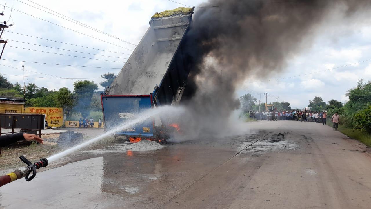 ● *11,000 केवी विद्युत कनेक्शन तार से हाइवा का डाला संपर्क आने पर लगी आग*….