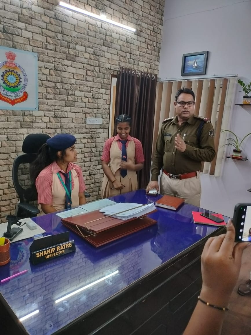 *रायगढ़* । पुलिस अधीक्षक श्री अभिषेक मीना के निर्देशन एवं अतिरिक्त पुलिस अधीक्षक श्री संजय महादेवा तथा नगर पुलिस अधीक्षक रायगढ़ श्री अभिनव उपाध्याय के मार्गदर्शन में आज दिनांक 20.11.2022 को #बाल सुरक्षा सप्ताह के तहत “इंडियन स्कुल रायगढ़” के छात्राओं को थाना कोतवाली आमंत्रित किया गया जिन्हें थाना प्रभारी निरीक्षक शनिप रात्रे के द्वारा थाना भ्रमण कराकर पुलिस के कार्यों की जानकारी दी गई। छात्राओं ने थाना भवन के अंदर थाना प्रभारी कक्ष, मोहर्रिर कक्ष, विवेचक कक्ष, रीडर कक्ष, सीसीटीएनएस कक्ष, पुरुष बंदी गृह, महिला बंदी गृह, माल खाना कक्ष का भ्रमण कर कक्षों में कार्यकत पुलिस अधिकारियों और कर्मचारियों से परिचय प्राप्त कर उनसे कार्यों को जाने । थाना प्रभारी शनिप रात्रे ने सीसीटीएनएस में एफआईआर की एन्ट्री तथा महिला से प्राप्त शिकायत के निराकरण के लिये बने महिला हेल्प डेस्क के संबंध में बच्चों को विस्तृत जानकारी दिया गया। साथ ही पुलिस अधिकारी व कर्मचारी के 24 घंटे ड्युटी में तैनात रहने व महिला एवं बच्चों संबंधित अपराध, गुड टच बैड टच, मानव तस्करी, बाल विवाह, पीड़िता क्षतिपूर्ति योजना, नशा के विरुद्ध अभियान के तहत अवैध गांजा, नशीली दवा, नारकोटिक्स / ड्रग्स अवैध नशे के खिलाफ कार्यवाही एवं जागरूकता के संबंध में विस्तृत जानकारी दी गई। छात्राओं को “हमर बेटी हमर मान” एवं अभियुक्ति ऐप की जानकारी देकर ऐप को डाउनलोड करने की सलाह दी गई। साथ ही सायबर संबंधी अपराध से बचने जागरूक रहने कहा गया और यातायात के महत्वपूर्ण नियमों के बारे में अवगत कराया गया । इस दौरान लिशा मिश्रा पढाई कर आगे पुलिस अधिकारी बनने की इच्छा जाहिर की, टीआई शनिप रात्रे उसे थाना प्रभारी के कुर्सी में बिठाकर उसकी इच्छा पूर्ण किये और थाना प्रभारी के कामकाज का तरीका बताये, छात्रा लिशा मिश्रा के साथ आयी छात्राएं “हमर बेटी हमर मान” एवं “निजात अभियान” में बने सेल्फी पोस्टर में फोटो खिंचवाए । थाना परिसर का भ्रमण कर बच्चे काफी प्रफुल्लित नजर आये ।