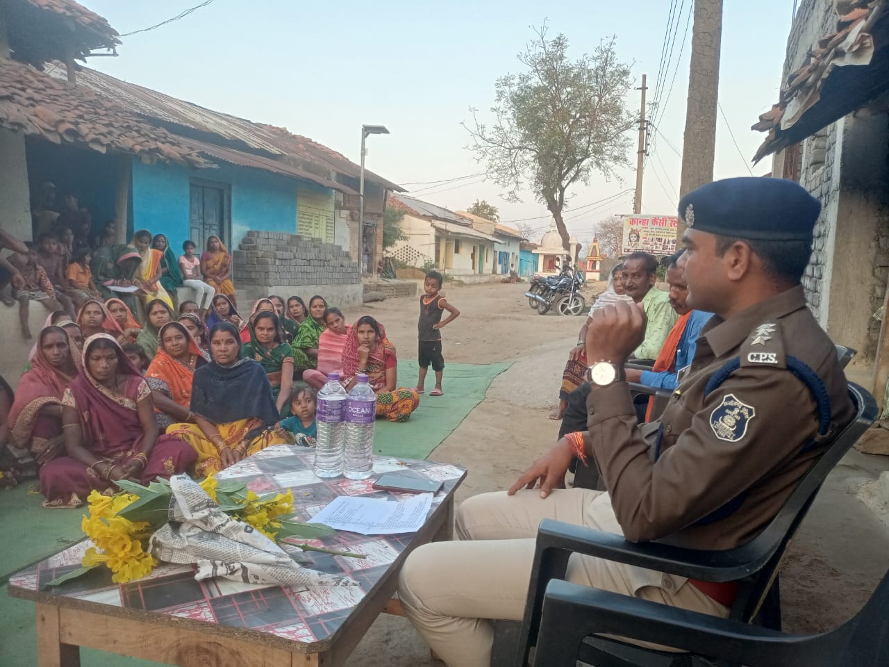 *रायगढ़* । आज दिनांक 29/02/2024 को खरसिया पुलिस द्वारा ग्राम रजघटा में पुलिस चौपाल लगाया गया । चौपाल में पुलिस अनुविभागीयअधिकारी खरसिया श्री प्रभात कुमार पटेल मौजूद रहकर थाना खरसिया द्वारा गठित महिला समूह के सदस्यों की समस्याएं, शिकायतों को सुना गया और मारपीट, झगड़ा विवाद के शिकायतों पर आवश्यक वैधानिक कार्यवाही के निर्देश दिये । चौपाल में एसडीओपी प्रभात कुमार पटेल द्वारा महिलाओं को साइबर फ्रॉड के संबंध में जानकारी देते हुए ऑनलाइन फ्रॉड से सजग किया गया और गांव में घूम रहे फेरी वाले, सोना चांदी चमकाने वालों से सतर्क रहने की समझाइश दिए तथा बैंक से रुपए लाने या जमा कराने के दौरान उठाईगिरी से बचने आवश्यक सावधानी बरतने कहा गया । एसडीओपी द्वारा गांव में शराब मुक्ति को लेकर महिला समूह द्वारा जागरूकता के कार्य की प्रशंसा किए और आगे भी पुलिस को सहयोग करना बताये । चौपाल में थाना खरसिया के सहायक उप निरीक्षक लक्ष्मी राठौर, महिला प्रधान आरक्षक सरोजिनी राठौर व स्टाफ मौजूद थे ।