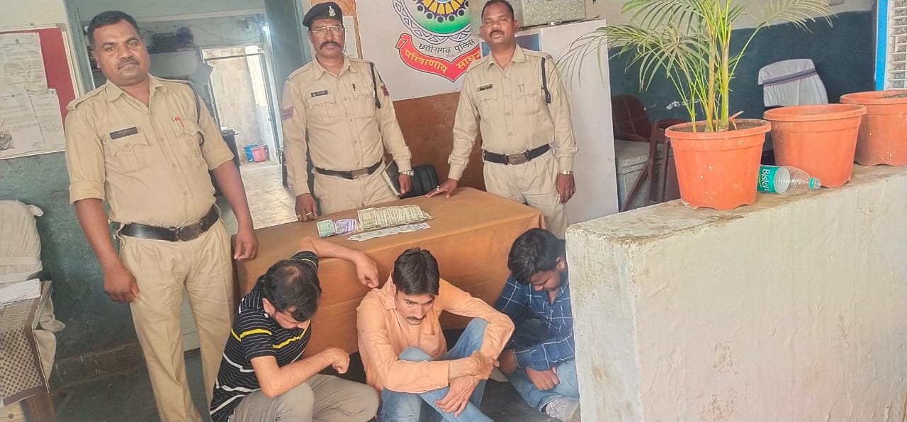 *रायगढ़* । पुलिस अधीक्षक श्री दिव्यांग कुमार पटेल के मार्गदर्शन पर अवैध शराब, जुआ सट्टा पर साइबर सेल एवं थानों की टीम द्वारा मुखबिर लगाकर निगाह रखी जा रही है । इसी क्रम में कल गस्त दौरान (01 मार्च) मुखबिर सूचना पर थाना प्रभारी जूटमिल निरीक्षक मोहन भारद्वाज के नेतृत्व में साइबर सेल और जूटमिल पुलिस द्वारा गढ़उमरिया केआईटी कॉलेज के सामने गोदाम परिसर में लाइट की रोशनी में कुछ लोगों के जुआ खेलने की सूचना पर पुलिस टीम द्वारा जुआ रेड कार्यवाही किया गया । कुछ जुआरी पुलिस की घेराबंदी को देख भाग गये, मौके पर पुलिस पार्टी ने तीन जुआरी- (1) रौनक अग्रवाल पिता गोपाल अग्रवाल उम्र 32 वर्ष साकिन मिटठुमुडा कालिंदी कुंज थाना जूटमिल रायगढ (2) प्रकाश बेरिवाल पिता सुरेश बेरिवाल उम्र 36 वर्ष गांधीगंज थाना कोतवाली रायगढ़ (3) प्रशांत मिश्रा पिता सुखदेव मिश्रा उम्र 22 वर्ष गोपालपुर थाना चक्रधरनगर रायगढ़ को पकड़ा जिनके पास और फड से ₹32,450 तथा जुआ फड के पास जुआरियों की खड़ी दो मोटरसाइकिल और एक अल्टो कार की जप्ती की गई है । जुआरियों पर थाना जूटमिल में जुआ के तहत कार्यवाही किया गया है । जुआ रेड कार्यवाही में टीआई जूटमिल मोहन भारद्वाज, आरक्षक धनुर्जय चंद बेहरा, बंशीलाल रात्रे तथा साइबर सेल के आरक्षक पुष्पेंद्र जाटवर, प्रताप बेहरा, सुरेश सिदार शामिल थे ।