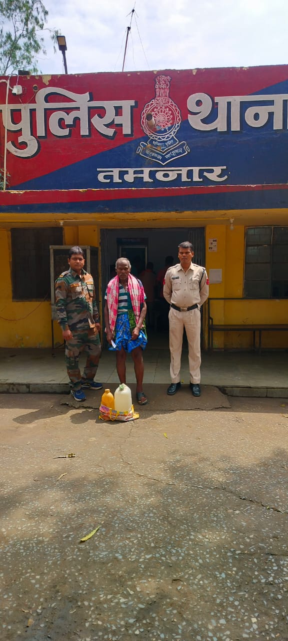 *19 मार्च, रायगढ़* । पुलिस अधीक्षक श्री दिव्यांग कुमार पटेल के निर्देशन पर जिले में अवैध शराब पर लगातार कार्रवाई की जा रही है । इसी क्रम में थाना प्रभारी तमनार निरीक्षक आर्शीवाद राहटगांवकर के हमराह तमनार पुलिस की टीम द्वारा कल मुखबीर सूचना पर ग्राम टांगरघाट से केशरचुंवा जाने वाली मेन रोड पर एक व्यक्ति को पैदल बोरे से शराब लेकर जाते पकड़े । आरोपित ने पूछताछ में अपना नाम लक्ष्मी प्रसाद राठिया पिता स्वर्गीय केन्दाराम राठिया उम्र 57 वर्ष साकिन टांगरघाट थाना तमनार जिला रायगढ़ बताया जिसके पास से 15 लीटर महुआ (कीमती ₹3000) शराब जप्त किया गया है । आरोपी पर थाना तमनार में धारा 34(2), 59(क) आबकारी एक्ट के तहत कार्यवाही की गई है । शराब रेड कार्रवाई में प्रधान आरक्षक संतोष कुर्रे, महिला प्रधान आरक्षक उषारानी तिर्की, आरक्षक पुष्पेन्द्र कुमार तथा भीष्म देव सागर शामिल थे ।