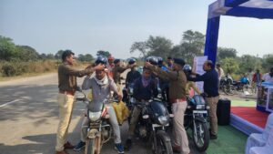 ● *यातायात जागरूकता अभियान में चालानी कार्यवाही के साथ बिना हेलमेट दुपहिया चालकों को बांटे 200 हेलमेट*