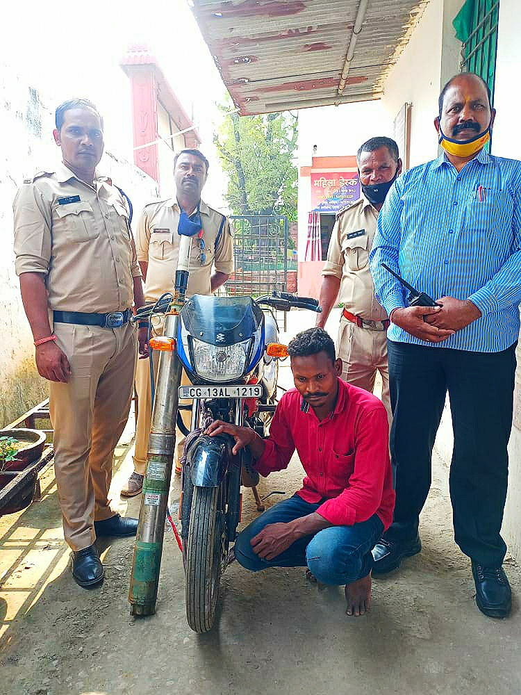चोरी की रिपोर्ट पर चौकी प्रभारी गिरधारी साव द्वारा मुखबिरों को सक्रिय कर पता लगाया गया जिससे तत्काल आरोपी *आसाराम सिदार पिता वासूदेव सिदार उम्र 30 वर्ष निवासी छातामुड़ा चौकी जूटमिल* के द्वारा समर्सिबल पंप चोरी कर छिपा रखने की सूचना मिली । आरोपी के कब्जे से *समर्सिबल पंप तथा घटना में प्रयुक्त मोटरसाइकिल सीजी 13 ए.एल. 1219 कुल कीमत ₹70,000* का जप्त किया गया है ।